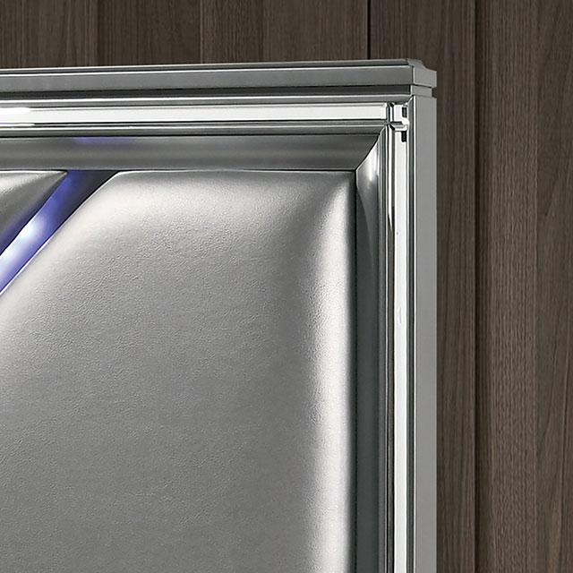 The enticing combination of glamour and Art Deco has long been attempted, but rarely with such successful results as achieved with this set. It is a visual masterpiece, harkening to the days of Old Hollywood while establishing a rich, dynamic concept for the bedroom. The embroidered padded headboard shines as if illuminated. The jewel-carved faux glass feet support the components with regal authority. Classic embossed patterns tie the set together in one magnificent and highly desirable theme.