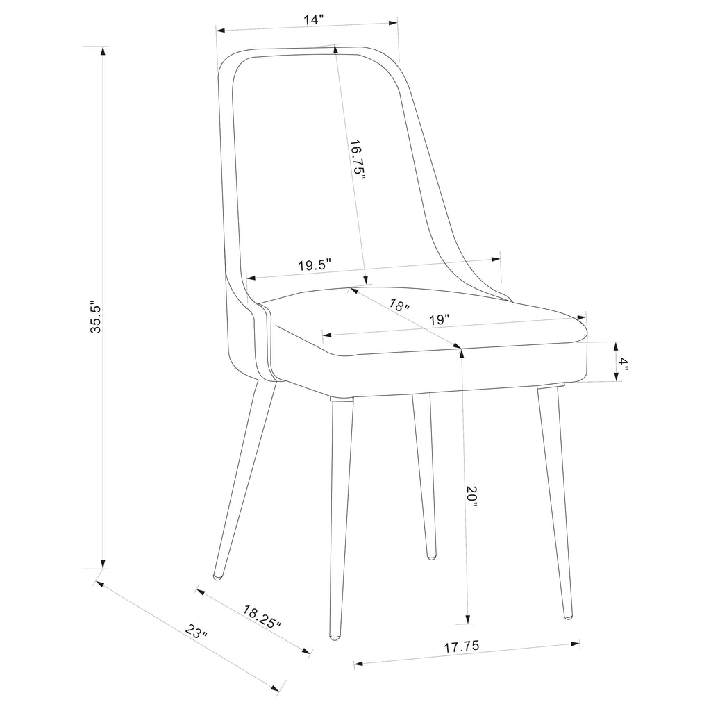 Channel mid-century charm with this armless side chair, wrapped in soft textured grey fabric. Its sleek wingback-inspired profile and gently tapered gunmetal legs bring a fresh, modern edge to dining spaces. Padded for comfort and built with durable materials, this chair offers a timeless silhouette that pairs effortlessly with a variety of table styles and finishes. Key Features: • Modern armless side chair with mid-century inspired wingback silhouette • Upholstered in textured grey fabric for a soft, sophisticated finish • Features slim, tapered legs in a sleek gunmetal finish for subtle contrast • Gently curved seat back provides ergonomic support and stylish appeal • Built with engineered wood frame, high-density foam, and heavy-gauge metal • Versatile design complements both casual kitchen nooks and formal dining rooms