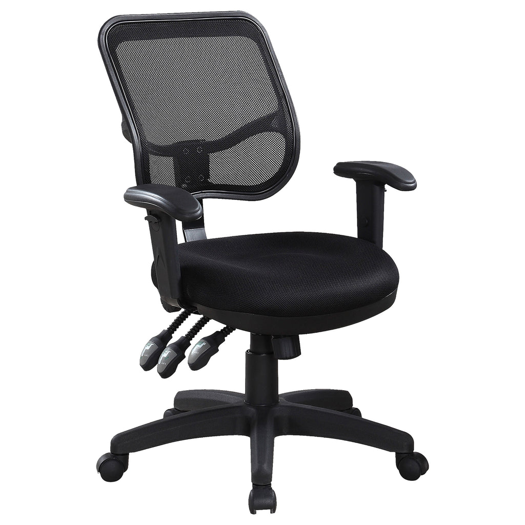 Work productively in exceptional comfort. A home or business office benefits from ergonomically upgraded seating, and this office chair fills the void. Stylish mesh on its seat back offers breathability to avoid moisture and mold. Sit comfortably on a molded seat and take advantage of multiple adjustability features. A spoke base with caster wheels ensures optimal mobility throughout the work day. Key Features: • Ergonomically upgraded seating for exceptional comfort • Breathable mesh seat back to avoid moisture and mold • Molded seat for comfort and multiple adjustability features • Spoke base with caster wheels for optimal mobility • Stylish black design to fit any home or business office